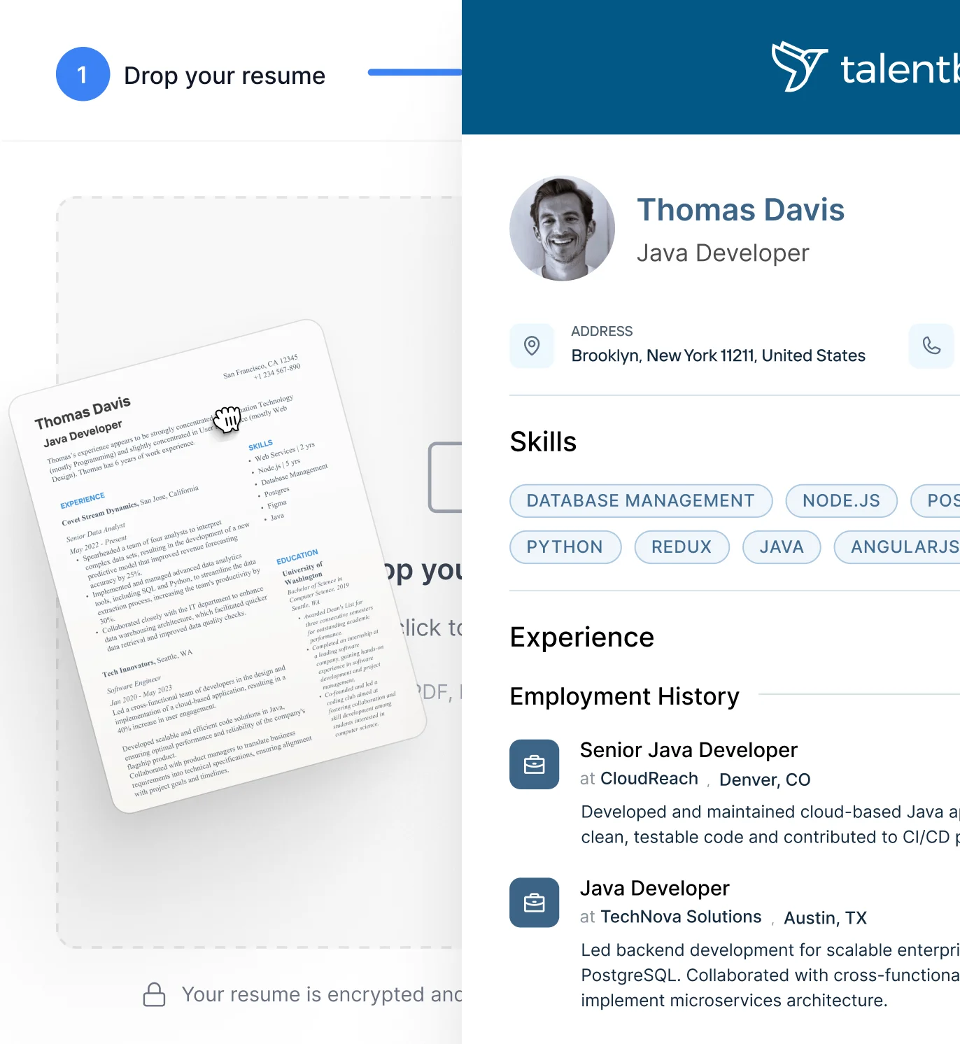 Resumes are automatically saved as profile versions in your database. Use it again for future submissions or track changes on their profile.
