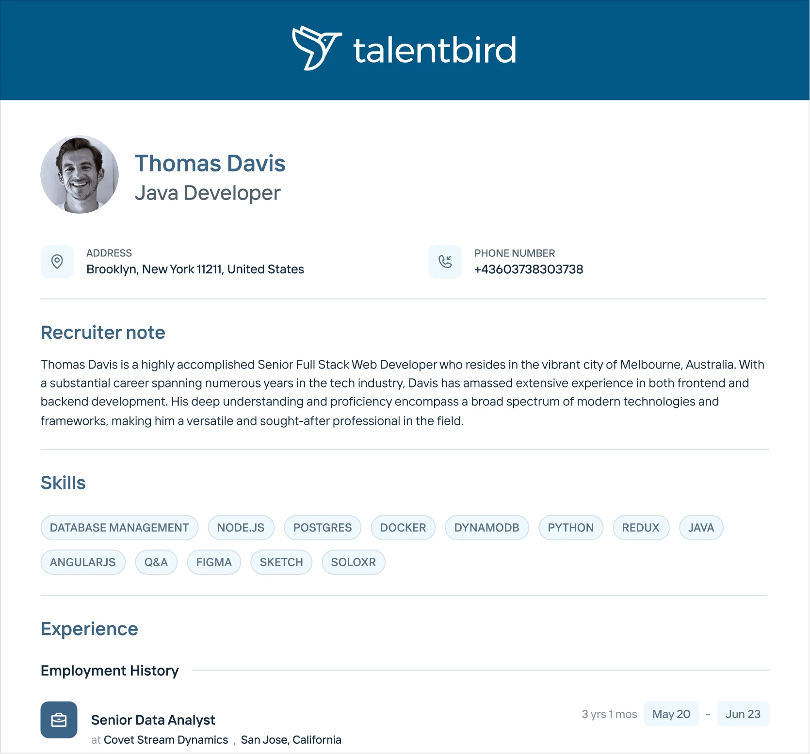 AI-generated candidate profiles in your pre-defined tone of voice.